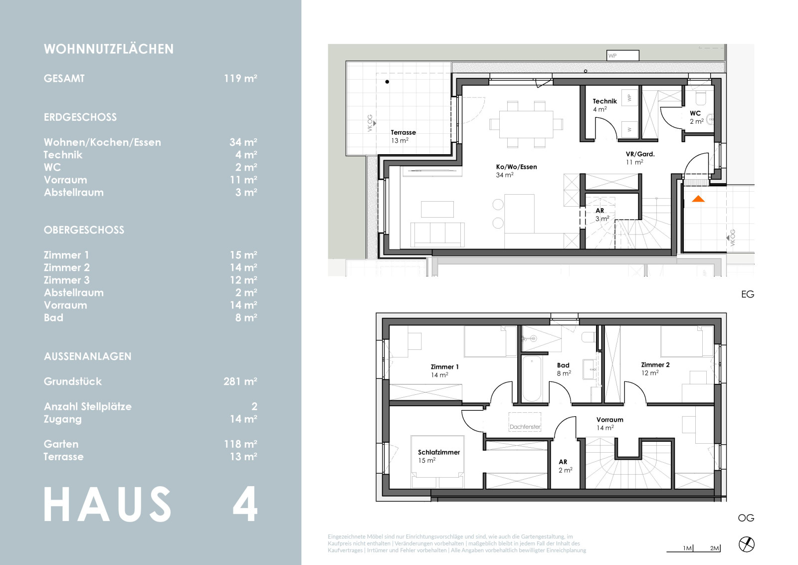 Zwei Autoabstellplätze – ohne Überdachung - runden das Angebot ab.