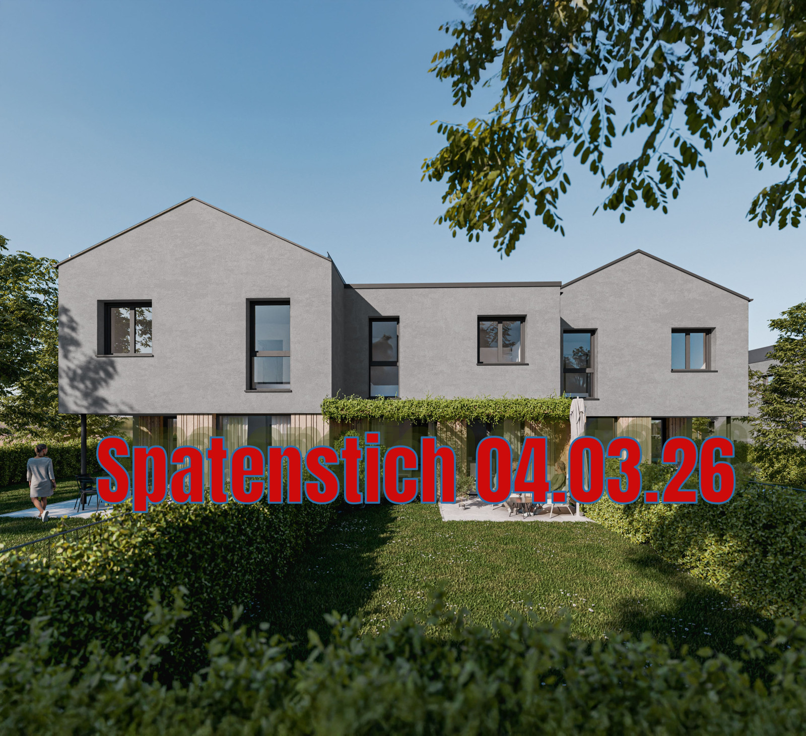 Die 12 modernen Reihenhäuser (4 Baukörper mit je 3 Einheiten) sind in zeitloser, klarer Architektur geplant.