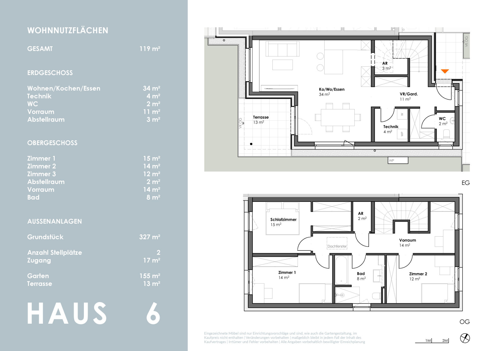 Zwei Autoabstellplätze – ohne Überdachung - runden das Angebot ab.