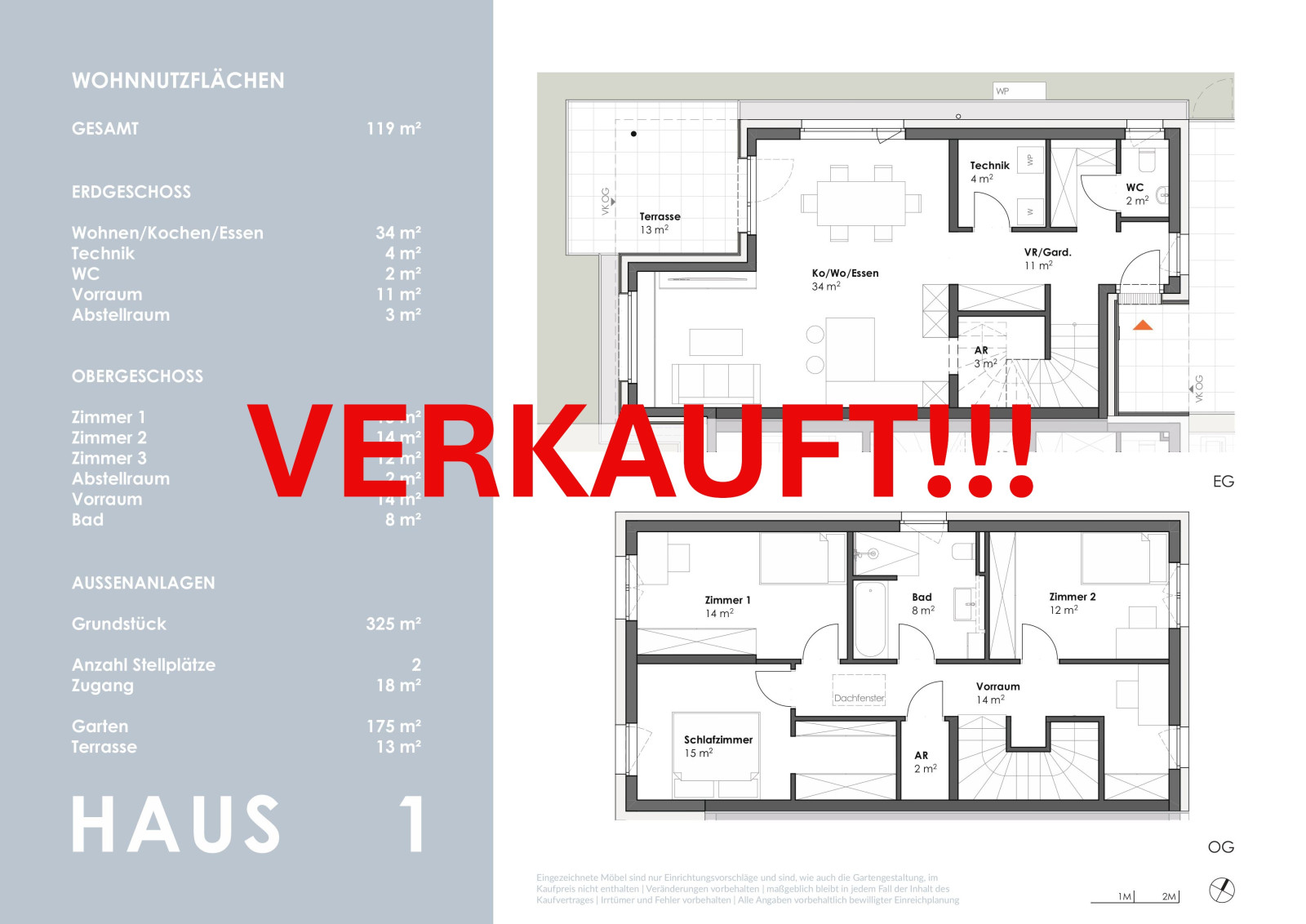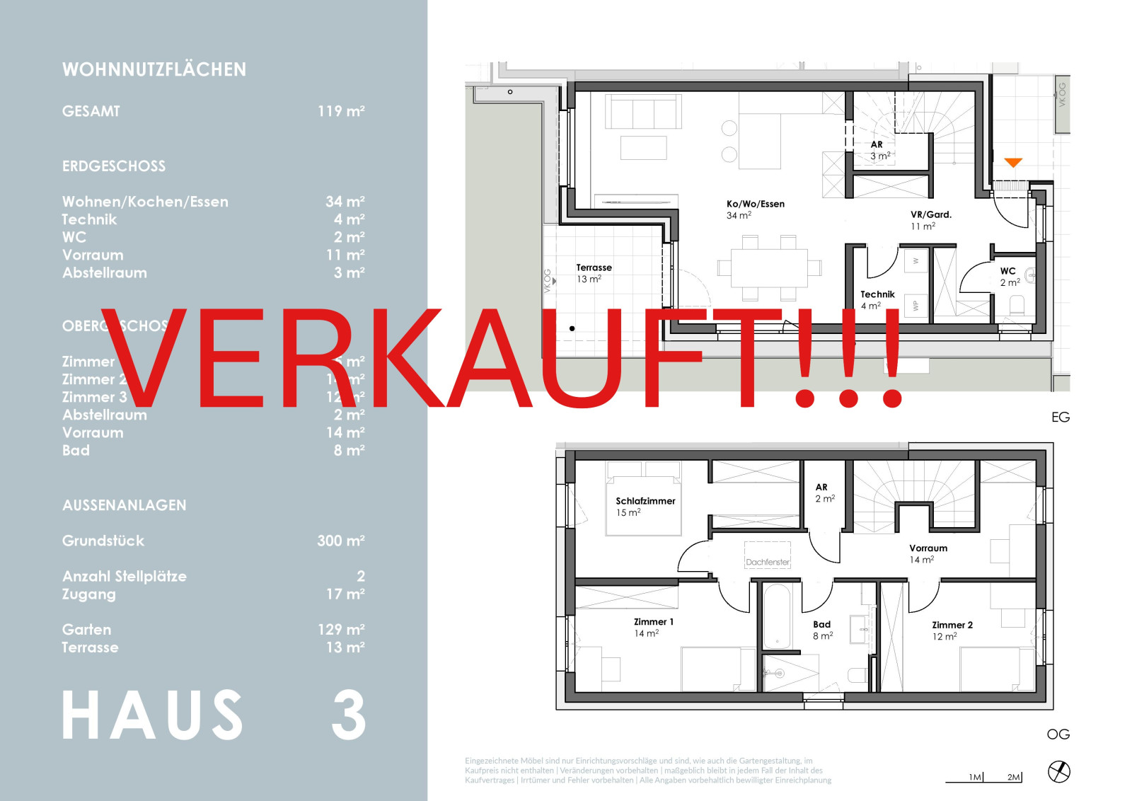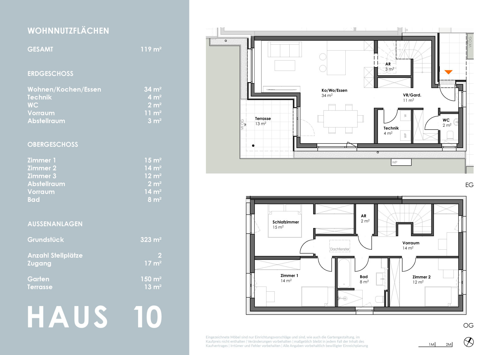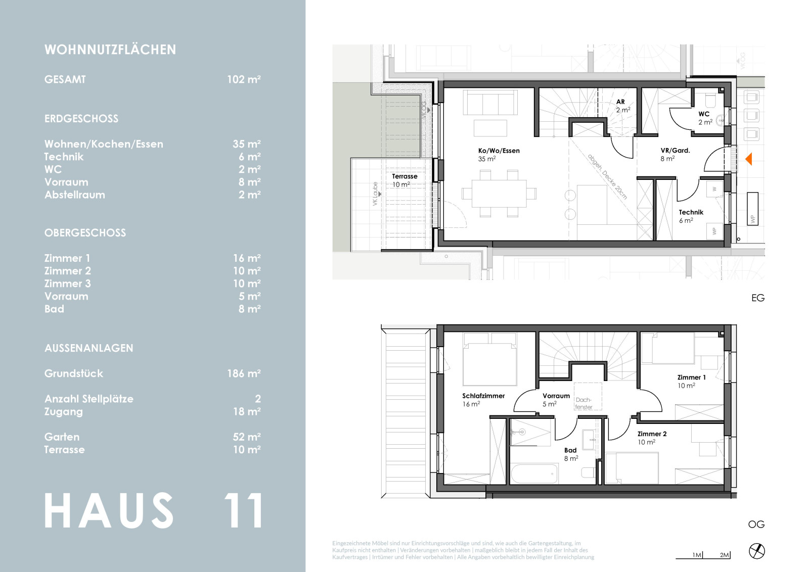 Die kompakt geplanten Häuser erstrecken sich über 2 Geschosse und bieten auf ca. 102 m² - im Mittelhaus - sowie 119 m² Wohnfläche viel Platz für die ganze Familie.