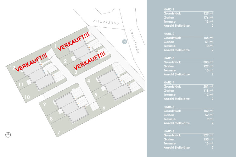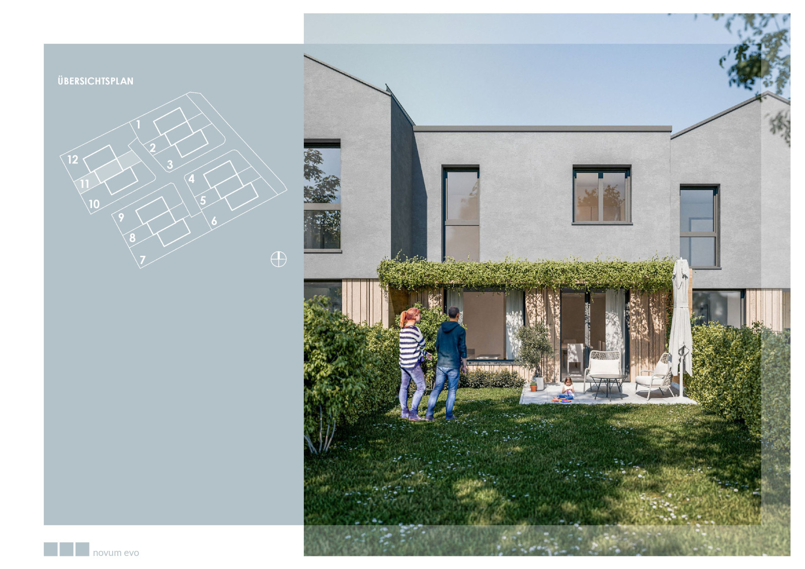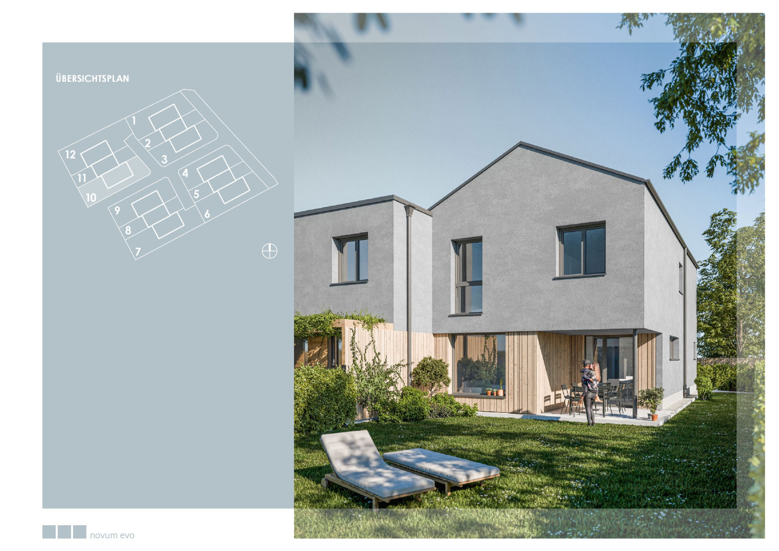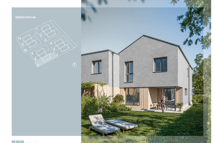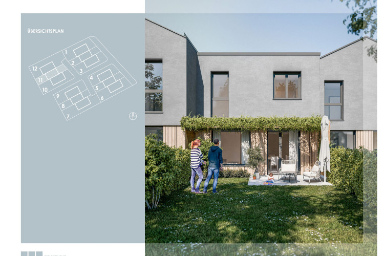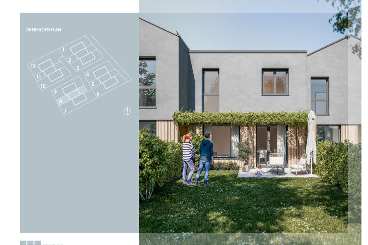 Die 12 modernen Reihenhäuser (4 Baukörper mit je 3 Einheiten) sind in zeitloser, klarer Architektur geplant.